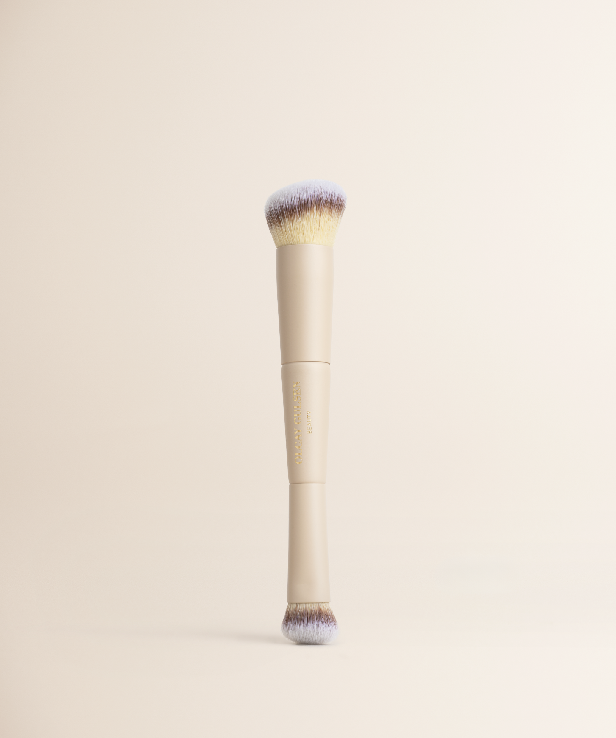 De grotere kant van de brush, met zachte synthetische haren, verdeelt je foundation gelijkmatig en helpt om harde lijnen soepel te blenden voor een egale teint. De kleinere, angled zijde is ideaal voor het nauwkeurig aanbrengen van concealer, vooral op lastig bereikbare plekken zoals de binnenste ooghoeken.