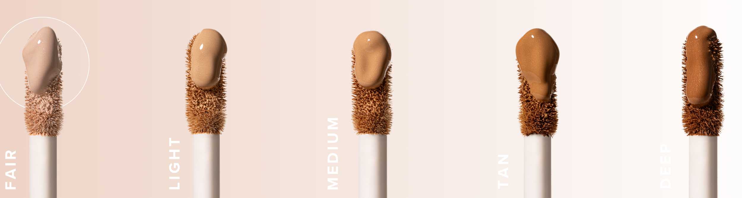 De concealer is beschikbaar in vijf tinten. Kies een kleur die dicht bij jouw huidskleur ligt of net iets lichter om donkere kringen te verbergen en je huid op te lichten.
