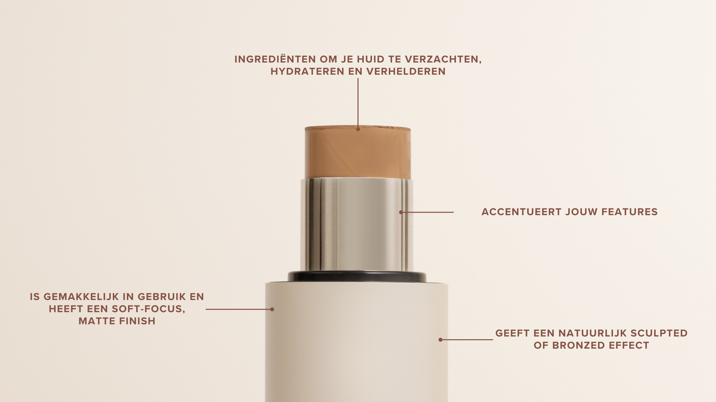 Een soft-focus matte finish zonder poederwaas, die een natuurlijk sculpted effect creëert.