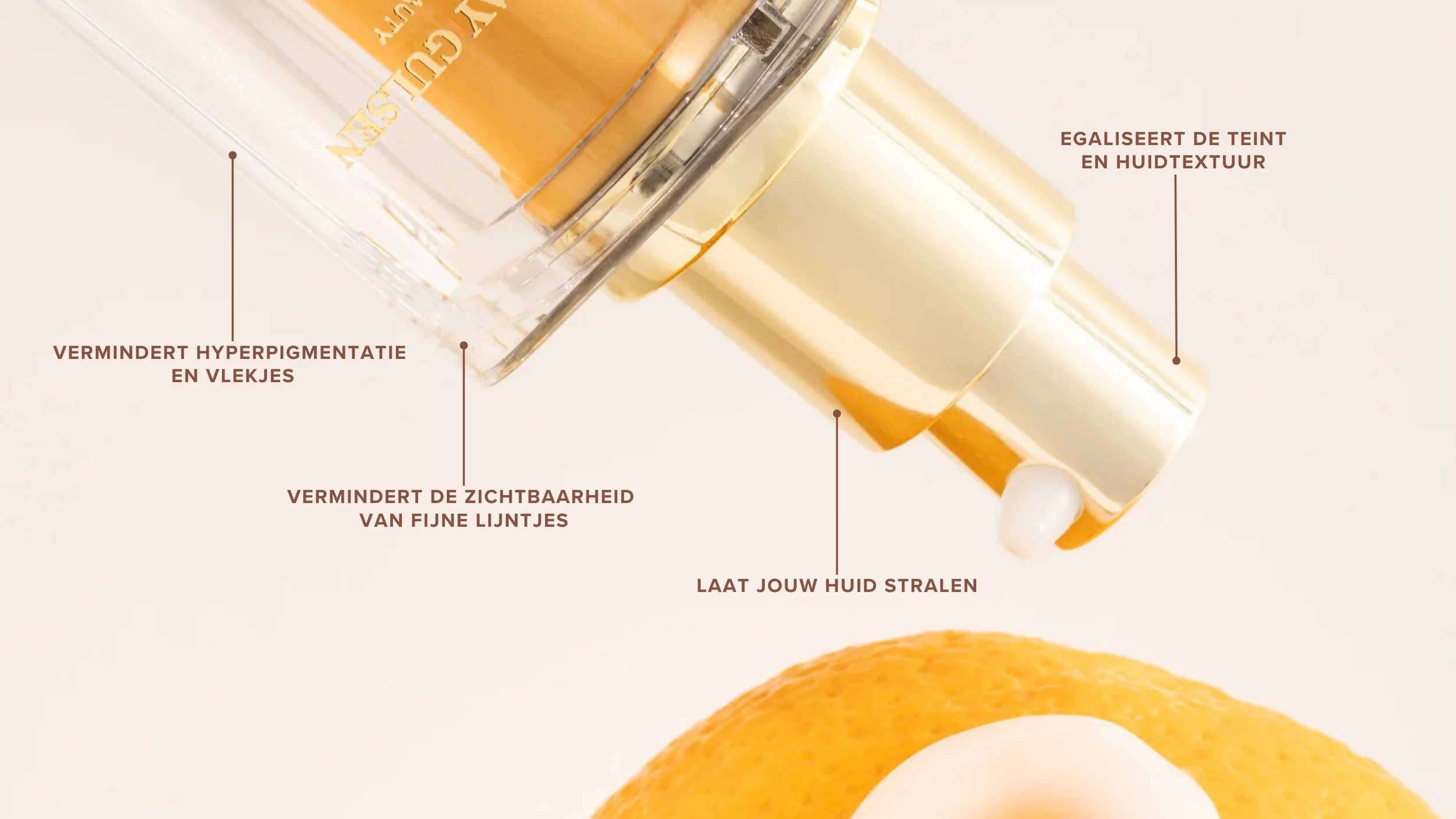 Vitamine C werkt als een krachtige antioxidant, beschermt tegen vrije radicalen, vermindert hyperpigmentatie, egaliseert de teint en stimuleert collageenproductie voor een stevigere huid.